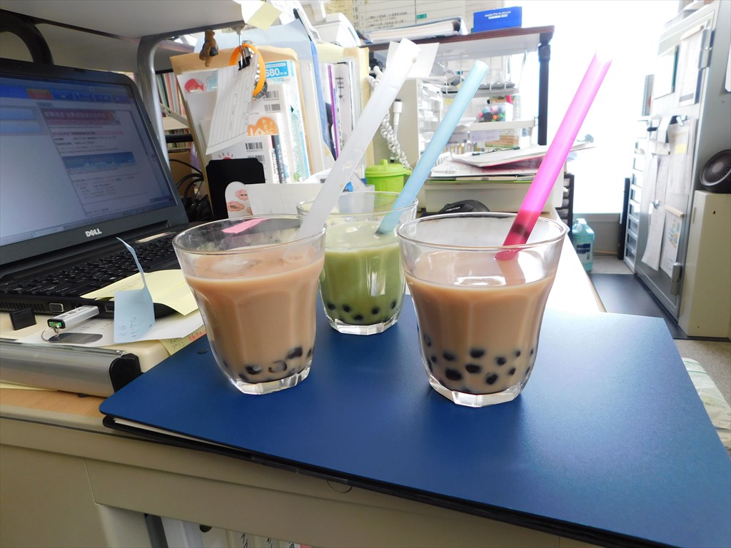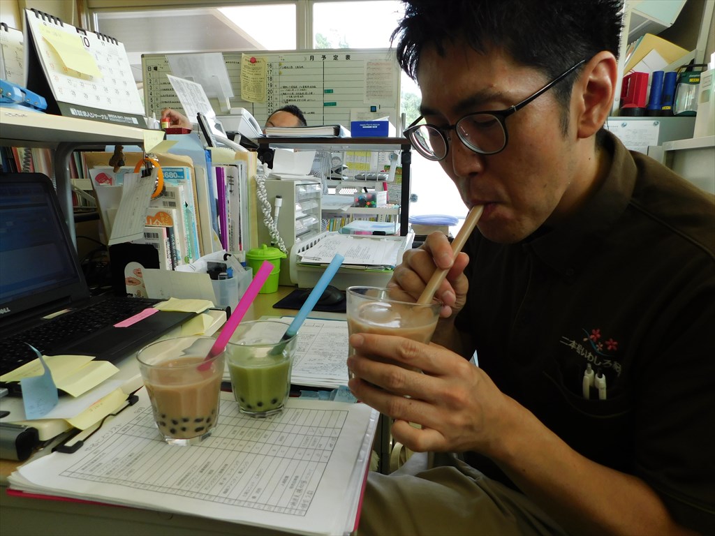 タピってますがなにか問題でも♪ 台風19号での断水対応する前のスタッフ便りをアップしていきます。 楽しんでいただけたら幸いです♪ タピオカドリンクつくりました♪ こーゆーの タピるっつーの? だれ? あの奥にいる髪型三角形の人 気になるーーー ストロー太くて うまくすえねぇー ずずずずずずずうzzz 3杯 いっき飲みしたことは 内緒ですよ(笑)