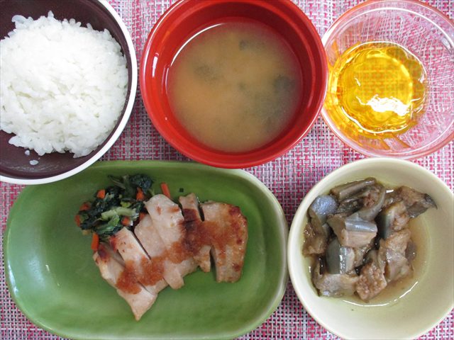 ごはん、白菜の炒め煮、味噌汁と一緒に提供しました。