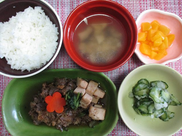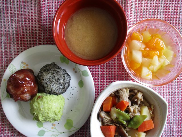 フルーツポンチ、味噌汁と一緒に提供しました。