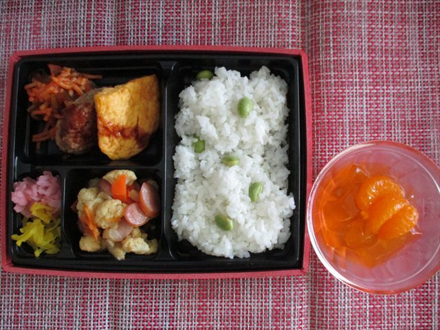京がんもの煮物、味噌汁と一緒に提供しました。