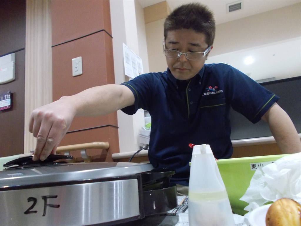 「鈴カステラ職人現る!」 東山熱海に甘~い匂いが充満しております♪ この真剣なまなざし! なにを作ってるの~? じゃ~ん!鈴カステラ☆ おいしそ~(*^O^*)/ 皆さん出来たてを召し上がりこの笑顔♪ そのままでもおいしいし、バニラアイスと一緒に食べるとなおおいしい! 職人ありがとう!!(笑)