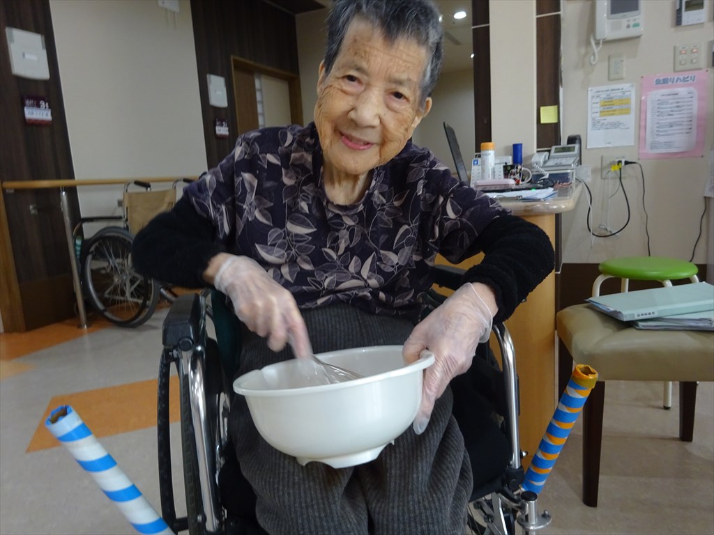 『さつまいも蒸しパン』を作りました♪芦ノ牧・湯野上ユニット 『カルピスムース』に続き、 『さつまいも蒸しパン』を作りました♪ カルピスムースは、白と紫の2層になっています。 紫は、ぶどう味のカルピスを使用しています。色合いがとってもキレイ♪ さつまいも蒸しパンは、 施設の畑で収穫されたさつまいもを使用しました。 職員Oさんが、レモンティーでさつまいもを煮てくれたので、 甘くておいしく仕上がりました(*^^*) ホットケーキミックスを使い、 ふわふわの蒸しパンができました。