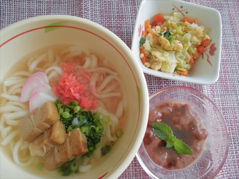 ソーキそばとキャベツの山吹和えを提供しました♪