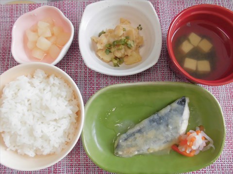 お誕生日献立♪ 9月13日は 湯野上ユニット E様のお誕生日でした! 希望されたメニューは「みそかんぷら」です。 ごはん、さわらのゆずこうじ焼き、フルーツ、すまし汁と 一緒に提供しました! お誕生日おめでとうございます(^^)♪