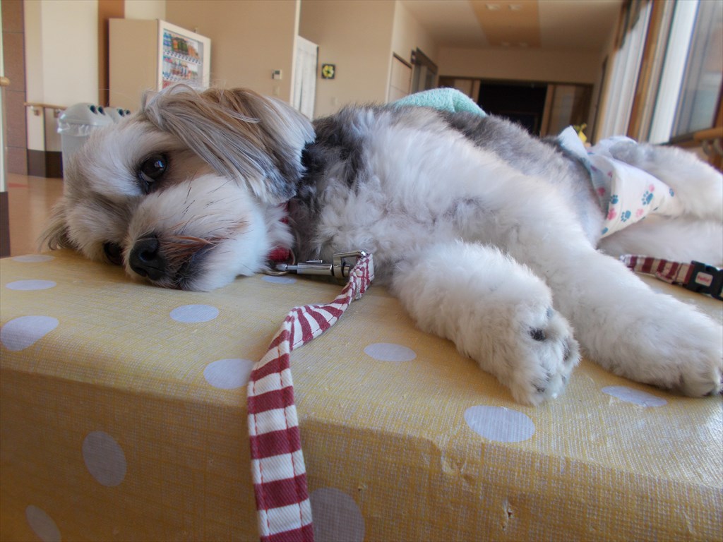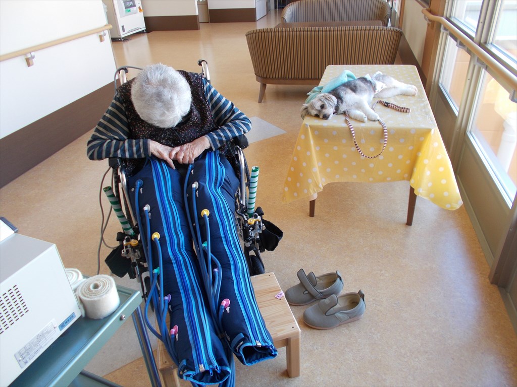 N様がリハビリ中は、めごはおとなしく待っています(^^)