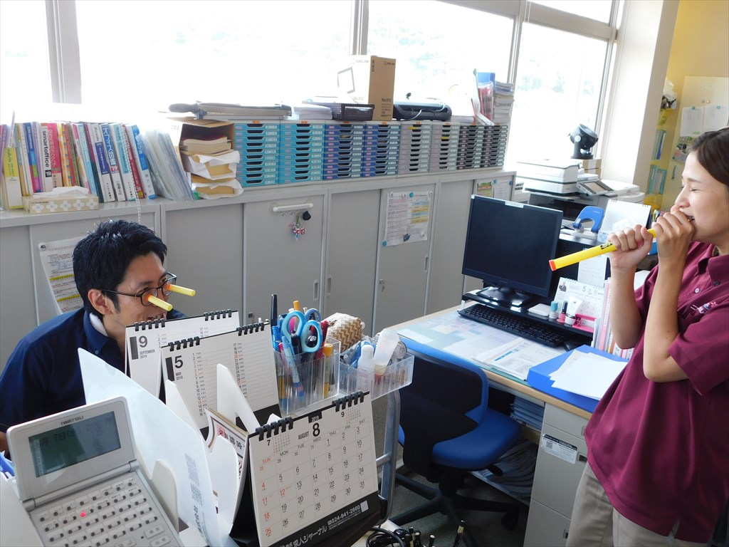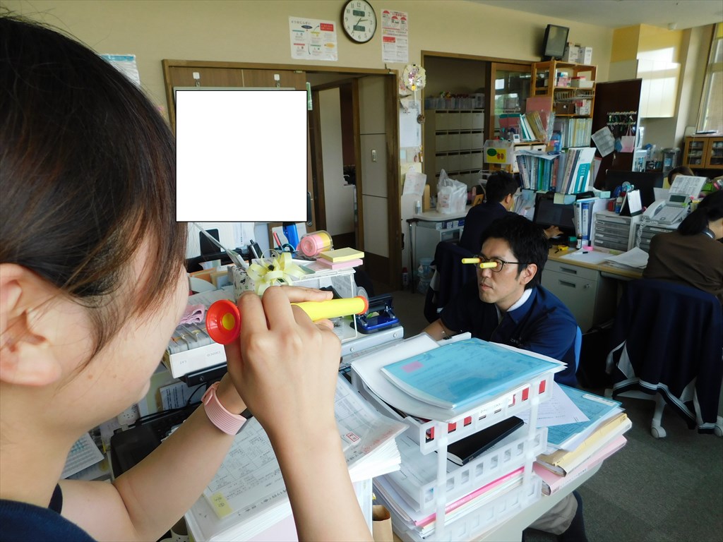 吹き矢の達人♪ 入居者さんのレクリエーションにはどうかと、吹き矢を購入♪ どのくらい飛ぶのか、職員が試してみました! ぷっ ぷっ ぷっ ぷっ 見事命中!! えーっとあなたたち… もしかして、前世は忍者でしたか? おそろしい命中率(笑) かわいそうに…、 ピッコロ代魔王みたいにされました(笑) ええ… 仕事はしっかりしてますが、なにか問題でも?