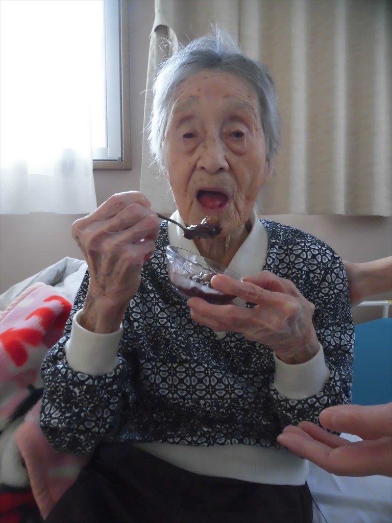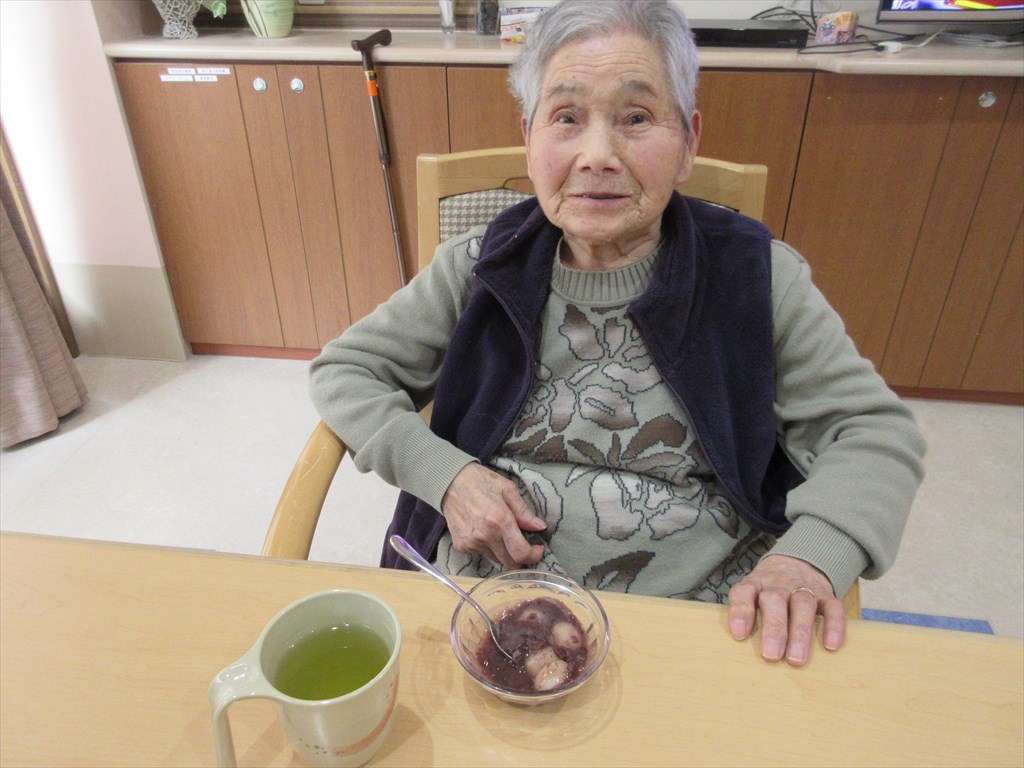 手作りおやつ岳塩沢ショートステイユニットから甘―い香りが・・・ 岳塩沢ショートステイユニットから甘―い香りが・・・ 今日のおやつは「お汁粉」です! 白玉団子を作って入れました 軟らかくて美味しいね♪ 甘いものは笑顔になります。