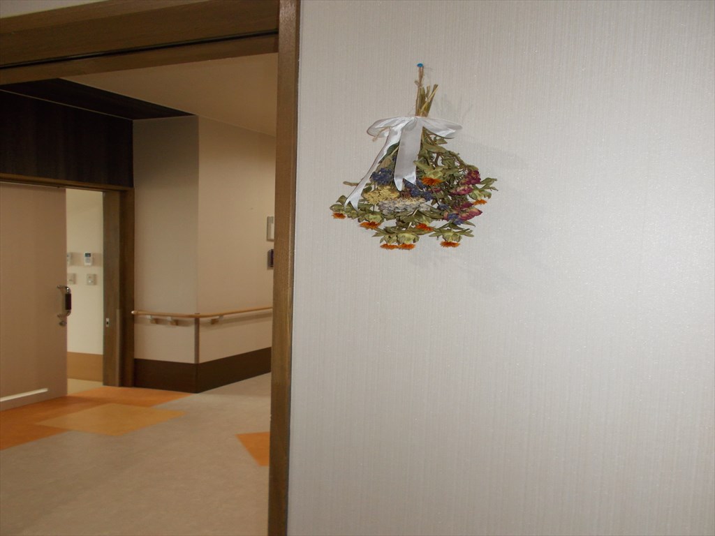 手作りのドライフラワー <芦ノ牧・湯野上ユニット> 職員のKさん、花が好きで、手作りの小物等を作る事も得意です♪ 芦ノ牧・湯野上ユニットには、 Kさん手作りのドライフラワーが飾ってあります お誕生日のお祝いにいただいた花束の花で作られたそうで、 可愛くリボン等で飾ってくださいました。 生花も綺麗ですが、ドライフラワーも可愛いですね(*^^*) ユニットの中に彩りがあると和みますね(^^♪