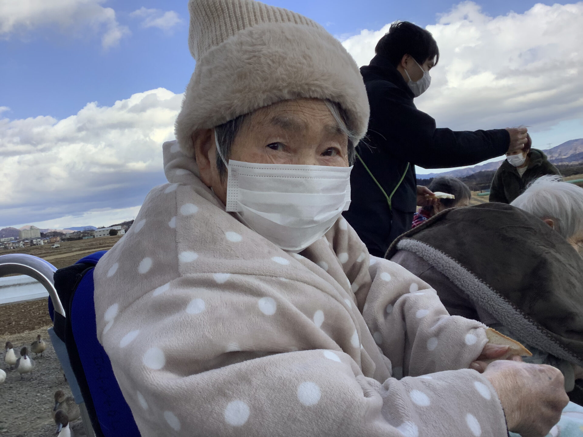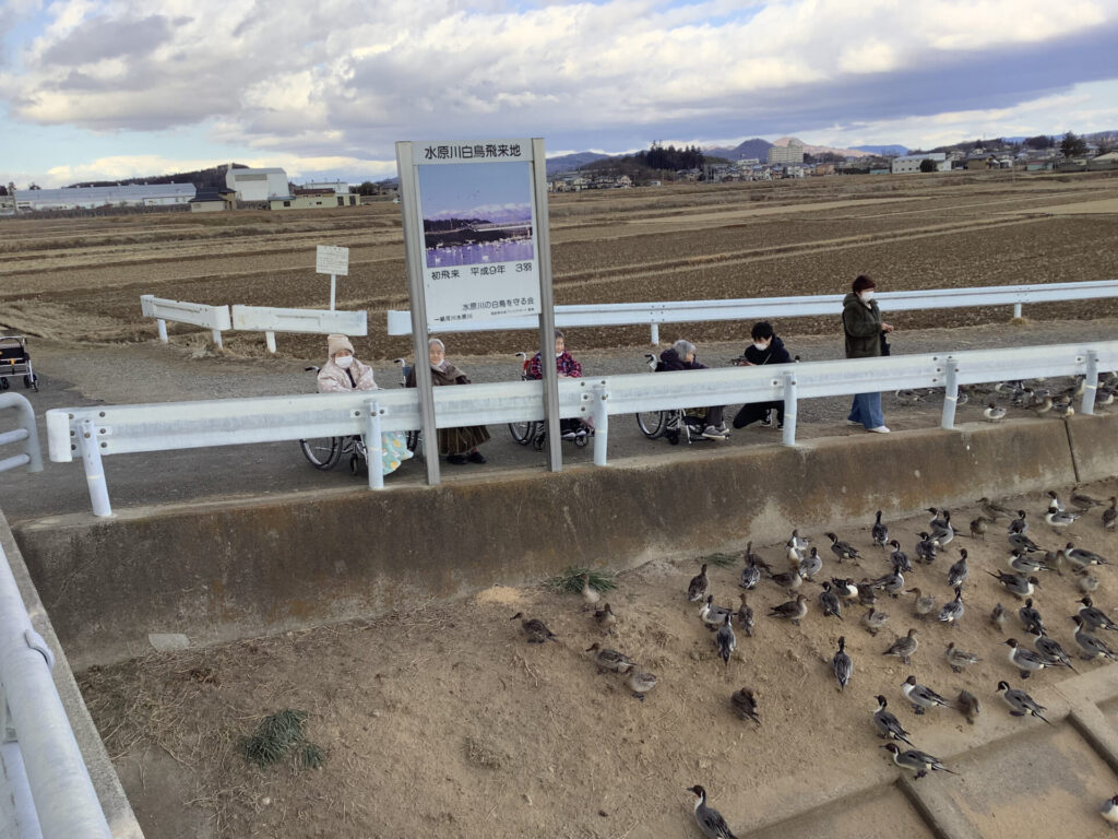 まだ風が寒い時期でしたが、白鳥や鴨をみて「こんなにいるのかい」「鴨もかわいいね」と話されていました。