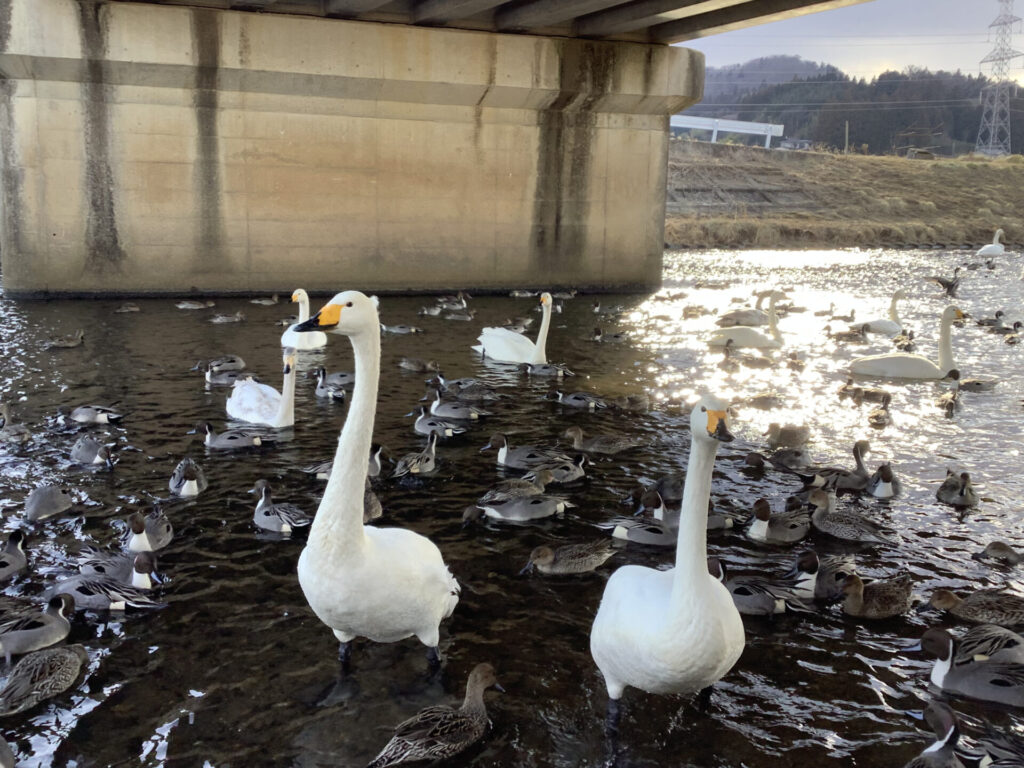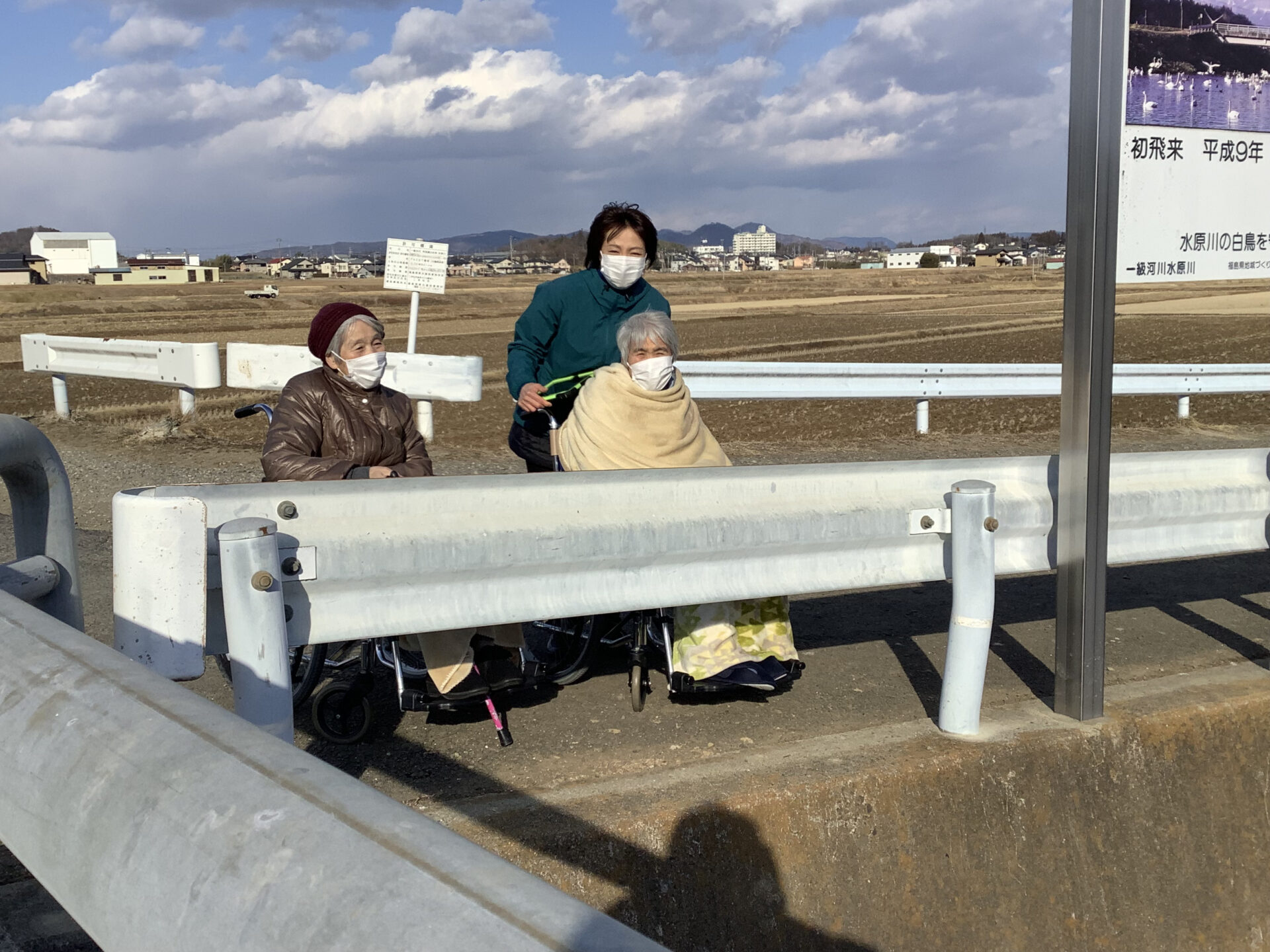 白鳥見物 2月9日 湯野上・芦ノ牧ユニットでも白鳥見物に行ってまいりました。 以前、見学に行った入居者様から「今年も白鳥が見たい」と要望があり、今回の企画となりました。 この日は風が冷たく皆さん寒そうでしたが、白鳥たちを見ると「きれいだね」「たくさんいるね」「今年も見れた」と大変喜んでおられました。