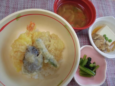地元の山菜や魚、えびなどを天ぷらにして味噌タレを
