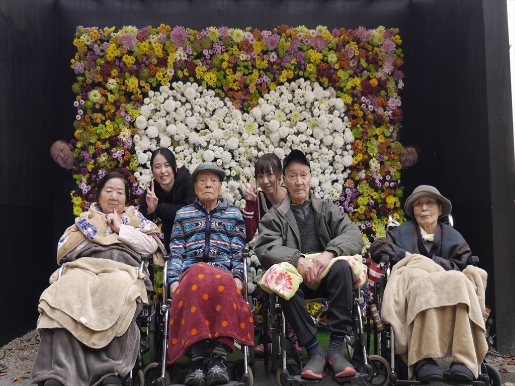 11月菊人形✿岳・塩沢ショートステイユニット 菊人形を見に行きました。 様々な菊が見られ、 ショートステイの皆様とても楽しそうに眺められていました♪ あれ?ひょっこりはん!? 2人居るので探してみてください♪ 動物と触れ合える場所もあり、とても喜ばれていました。 満面の笑みです★ 温かい今川焼きを食べ、体を温めました♪
