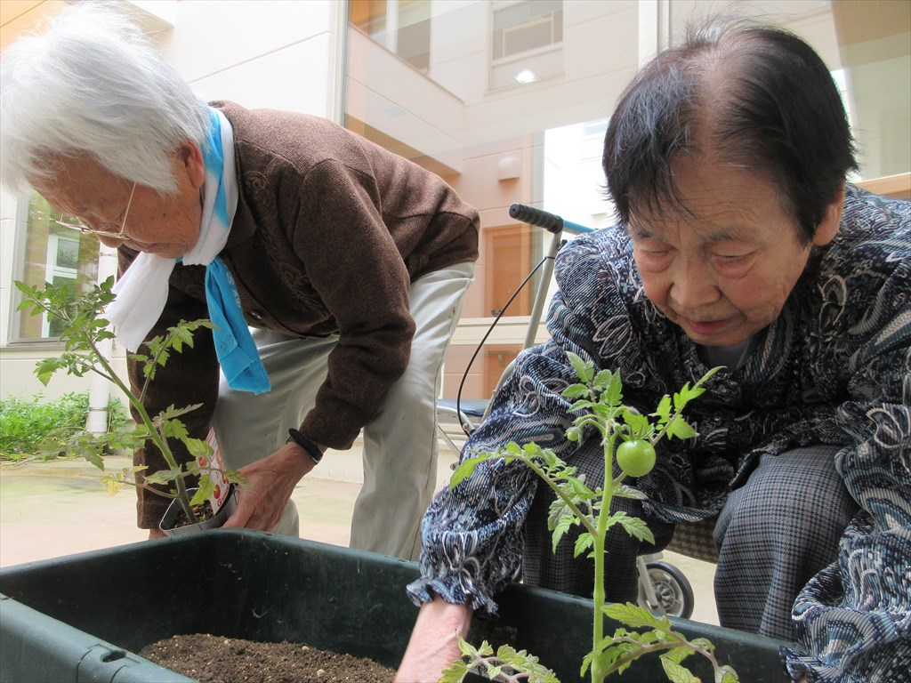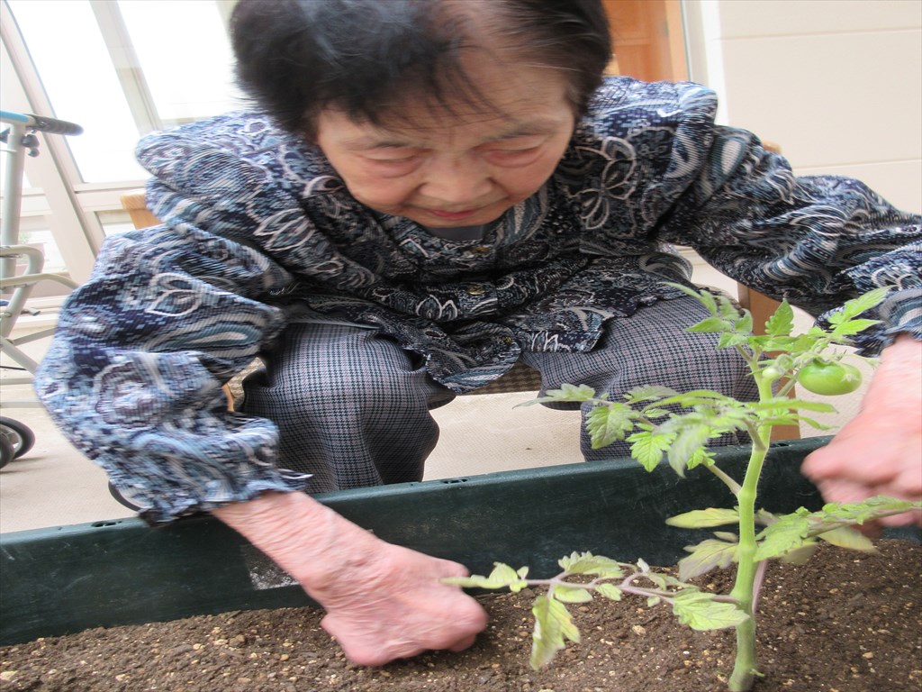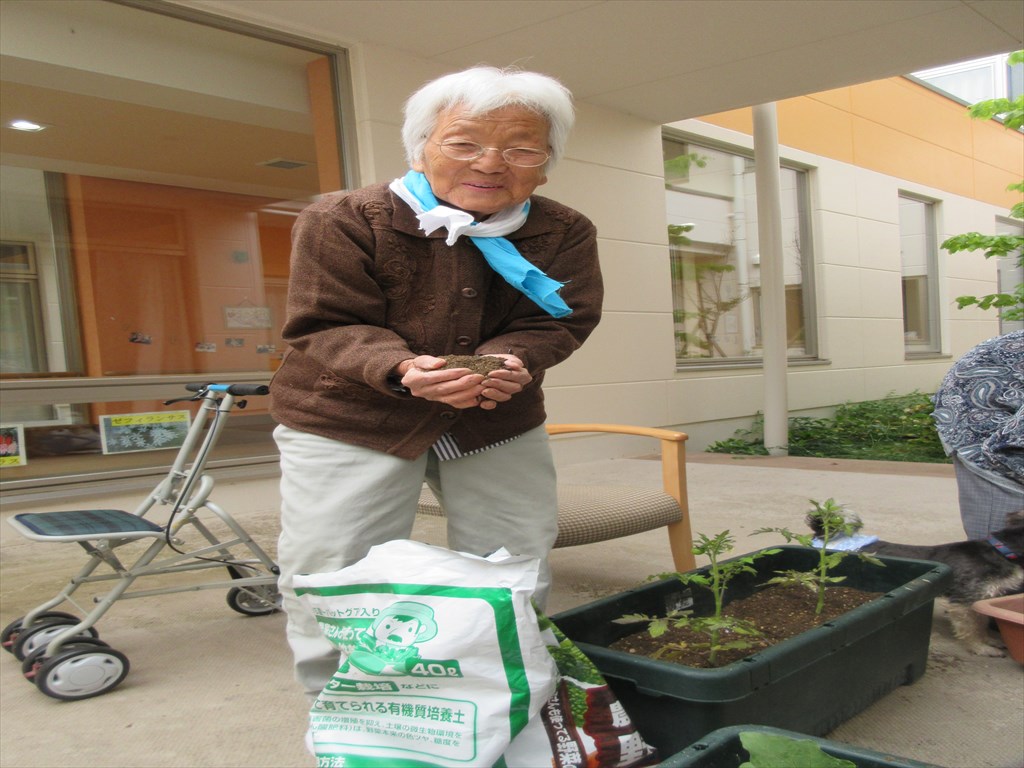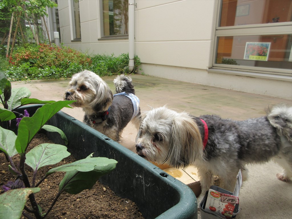 野菜の苗を植えました♪ 野菜の苗を植えました! 岳塩沢ショートステイユニットでは野菜の苗植えを行いました。 今回はトマトとナスと二十日大根の種です。 お手伝いして頂き、あっという間に終~了~! ボンちゃんメゴちゃんもお手伝い!?