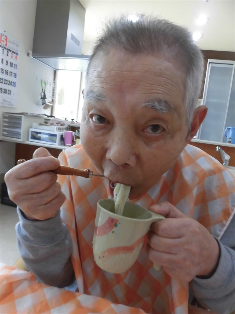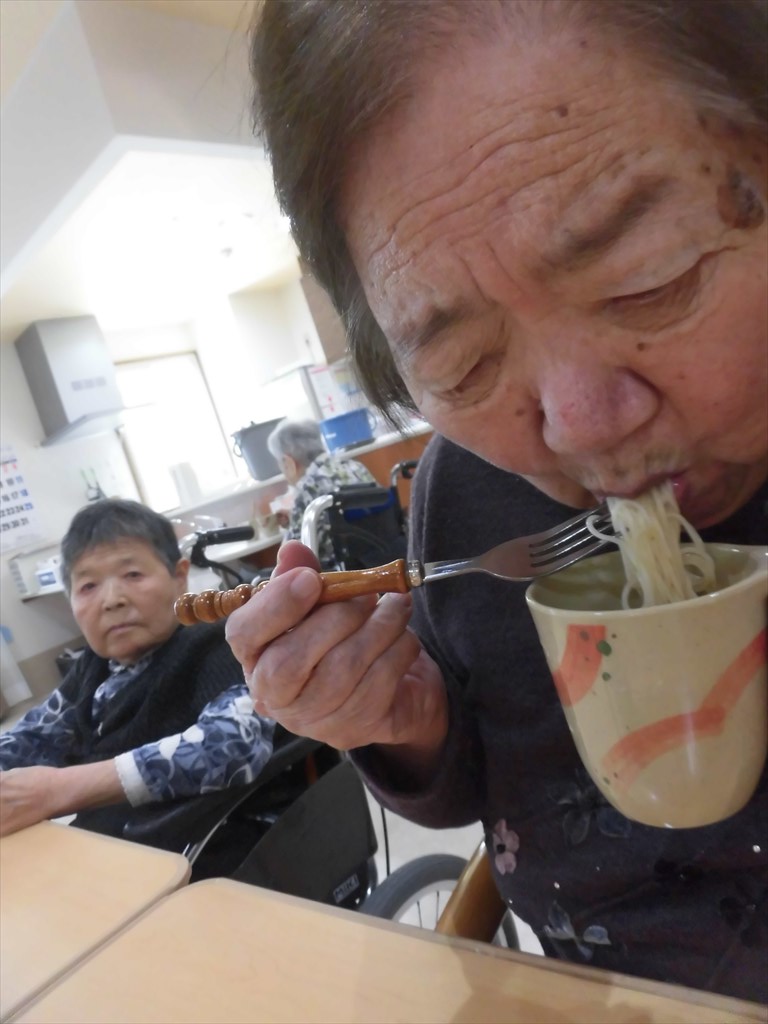 天気の良い日は、さっぱりしたおやつが食べたーい! そういう事で岳・塩沢ショートステイユニットの 今日のおやつは「そうめん」です。 思い立ったら即・行動しちゃう職員です(笑) わんこそば風に、 わんこそうめんで美味しく頂きました。 普段あまりお代わりと言わない利用者様も、 何杯も食べてました! 夏を先取りのおやつでした☆