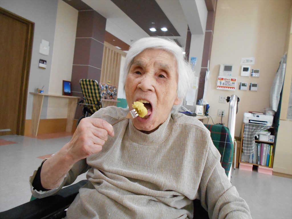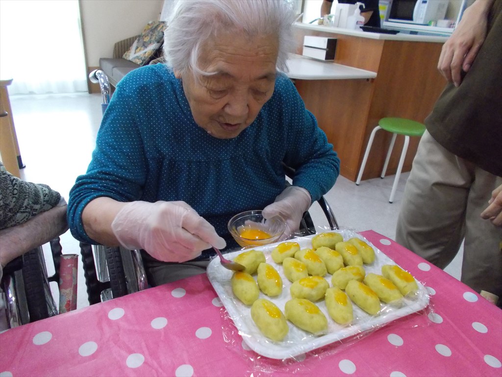 ~10月のおやつ作り さつまいもがおいしい季節になってきました~ 今月はスイートポテトを作りました。 さつまいもをしっかり潰して形を整え しっかり焼き色をつけて完成です。 ホクホクで甘くてとても美味しく出来ました。
