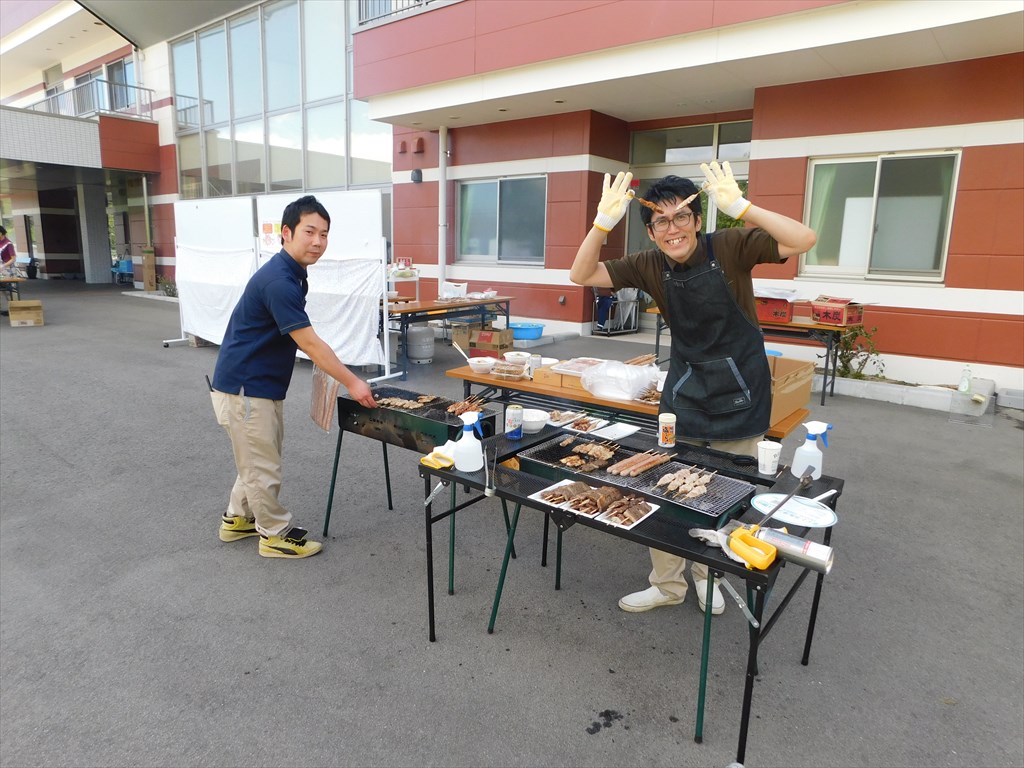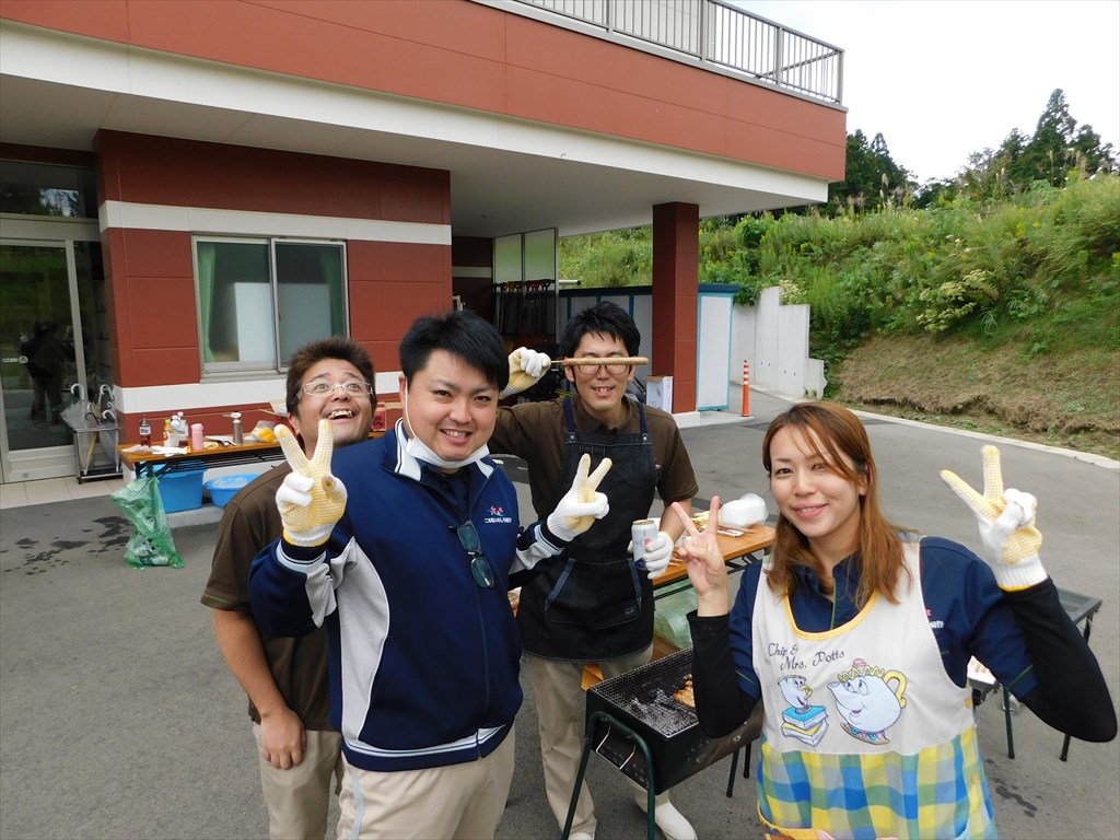 職員芋煮会♪ 芋煮、焼きそば、焼鳥、ソーセージ、牛串 芋煮はお母さんの味♪めちゃ旨い!! 焼きそばは風味良く仕上がってます♪旨し!! 焼き鳥、ソーセージは、職員に炙りの匠がいます(笑)これも旨し♪ なんと牛串はサーロイン♪です♪ あいあい互助会の、食材選びの目利きは確かなようです♪ すげーうまかったです♪