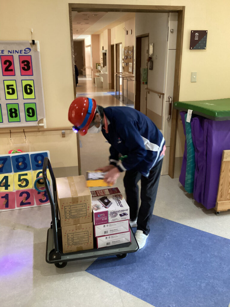 地震想定訓練 3月6日に震度5以上の地震による停電や断水の初動対応について訓練を行いました。 揺れがおさまったら入居者様の安全確認。避難経路の確保。 停電と断水を想定した物資運搬およびトイレ使用制限などを訓練に盛り込みました。 入居者様誘導や停電、断水の初動訓練の後に垂直避難訓練。 ポータブル発電機の使用手順のレクチャーを行いました。 あらゆる状況を想定したより実用的な災害の訓練を今後も模索して、入居者様の生活を守れるよう努めていきたいと思います!!