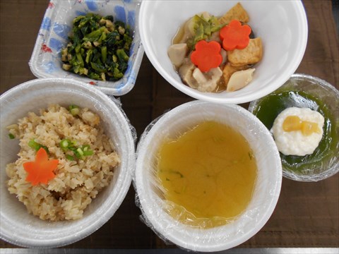 お誕生日献立♪ 10/26は、湯野上ユニットのN様のお誕生日でした。 希望されたメニューは「いなりずし」です♪ 筑前煮、かぼちゃ羊羹、一口そばと一緒に 提供しました! お誕生日おめでとうございます♪(^^)