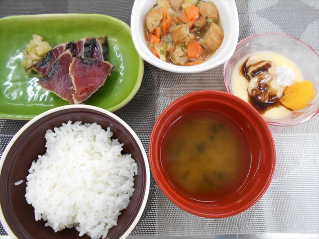 T様はプリンアラモード、K様はかつおの刺身のリクエストで、