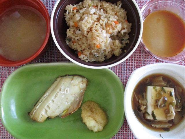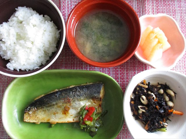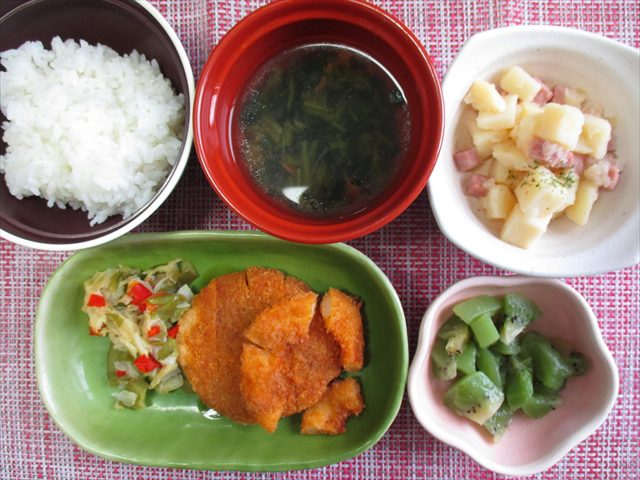 ごはん、白菜の炒め煮、味噌汁と一緒に提供しました。